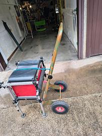 vendo panchetto da pesca usato pochissimo con accessori e ombrellone. carrello artigianale divisibile