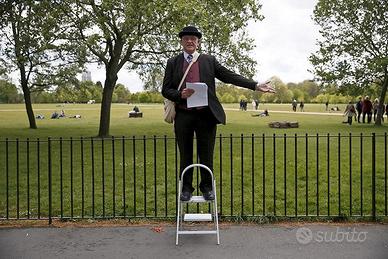 Panchetto per l'Angolo degli Oratori di Hyde Park (London) realizzato artigianalmente in Legno resistente multistrato.