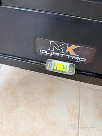 Livella: Una delle immagini ravvicinate mostra una piccola livella a bolla integrata , fondamentale per assicurarsi che la postazione sia perfettamente orizzontale, migliorando il comfort e l'efficacia di eventuali accessori aggiuntivi.