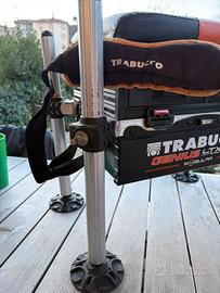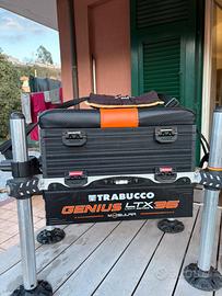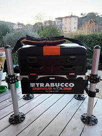 Vendo paniere Trabucco, con mudulo aggiuntivo H 80 e regicanna, mancano manopole per piedi, uso una pinza e piccolo taglio sul cuscino riparato. Euro 130
