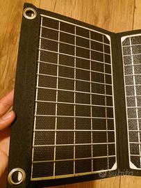 nuovo, provato una volta, pannello solare portatile da zaino, con anelli per agganciarsi.