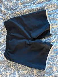 Pantaloncini da tennis Lotto originali, modello Squadra Short, colore blu navy con inserti bianchi a contrasto sui lati e sul fondo gamba.