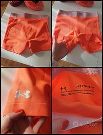 Comodissimo pantaloncino da corsa, spinning, bike, palestra, etc... arancione fluo, Under Armour taglia xs, che veste tranquillamente S. Nuovo. Mai messo. Ne ho uno identico color rosa antico, vedi i miei annunci.