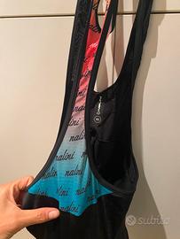 Pantalone ergonomico marca Nalini con una particolare costruzione delle bretelle sul davanti.