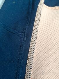Tessuto non tanto pesante elasticizzato, ideale per primavera, estate, autunno. Ottime condizioni. Mancha l'etichetta, perché mia figlia le taglia sempre in quanto le danno fastidio. Cmq è stato usato da una bimba di 11 anni, ma direi che ha una buona vestibilità in quanto si allarga molto, quindi come misura S-M.