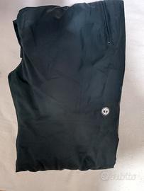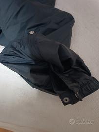 Regolabili in vita con elastico e cinghie con velcro, finale di gamba con cerniera e copri scarpa.