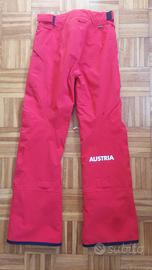 Pantalone da sci o ciaspole utilizzato pochissimo, antivento e caldissimo. Cintura regolabile. Il colore è rosso Ferrari. Prese d'aria interno gamba. Possibilità di avvolgere una parte della lunghezza grazie al comodo cinturino posteriore (bottone a pressione). Non aderisco a programma Tuttosubito.