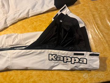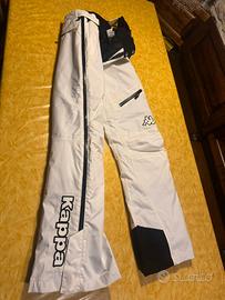 Pantalone sci donna KAPPA tg. L per sci o camminate sulla neve imbottito ed impermeabile, dotato di bretelle elastiche, velcro regolabile in vita, cerniere impermeabili per tutta la lunghezza della gamba, ghette copriscarpone e rinforzo in cordura interno. Condizioni perfette pari al nuovo.