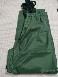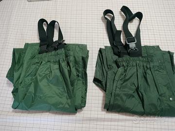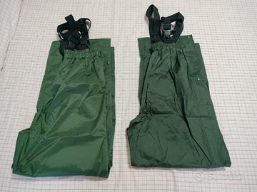 Vendo due paia di pantaloni verde oliva leggeri impermeabili ed antivento taglia L, adatto per attività di caccia e softair. Molto leggeri e comodi. Dotati di bretelle nere. Prezzo euro 30