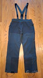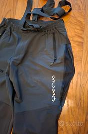 Bretelle regolabili e staccabili, tasche con cerniere, cerniere per ventilazione sulle coscie, doppia ghetta regolabile con elastico, velcro e cerniera.