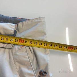 Pantaloni da sci da donna marca Lafuma, colore grigio ghiaccio taglia S (40). I pantaloni scendono dritti sugli scarponi ma l'elastico sottostante protegge dalla neve. - Logo Lafuma visibile. - Tasche anteriori. - Dettagli colorati sulle tasche. - Fondo gamba con ghetta. ATTENZIONE: presenta difetto sul fondo dovuto a cadute su sci, come da foto.