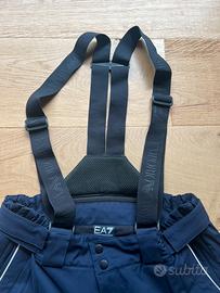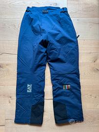 Vendo pantalone sci utilizzato per un paio di uscite quindi senza etichetta, come nuovo. Massima protezione del freddo con imbottitura sintetica e spalmatura interna isolante. Modello a vita alta con chiusura della patta con zip a scomparsa e due bottoni a pressione. Girovita regolabile con mostrine laterali, ghetta interna. Con bretelle elastiche, tasche multiple con cerniera. Personalizzazioni Team e loghi EA7 e FISI. Taglia L, color fisi blue.