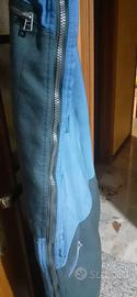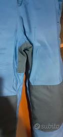 Pantaloni a salopette, marca Mountaineer, professionali, Tg 50 colore blu. Impermeabili, con cerniere laterali che si APRONO COMPLETAMENTE. Dotato di ghette con chiusura con bottone automatico e velcro. Anche le ghette si aprono completamente. Sono presenti bretelle staccabili con fibbia con supporto alto posteriore (ottima tenuta). Strip a velcro laterali, frontali e in loco delle ghette. Il pantalone adatto per snowboard e sci, è dotato di rinforzi su ginocchia e cavallo antistrappo tipo Cordura. Si calza con estrema facilità ed ha un’ottima vestibilità. Risulta ottimo anche per le uscite invernali in moto. Tutte le tasche (tre) hanno la cerniera e quelle anteriori hanno la patta di protezione. Prezzo escluso spedizione, Altre foto su richiesta