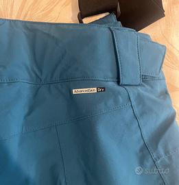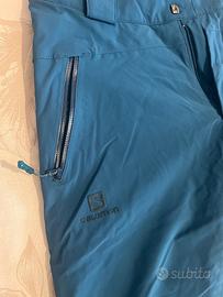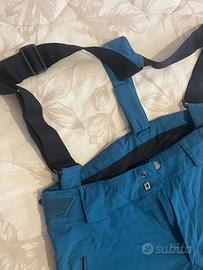 Vendo pantaloni da sci Salomon imbottiti usati taglia S, colore azzurro, con tasche, aperture di ventilazione, bretelle, softshell, molto comodi e morbidi, ancora in buono stato
