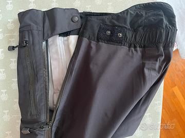 Pantaloni da donna in Goretex, colore nero, taglia XS, marca Eider, full-zip (si apre completamente da vita a caviglia senza bisogno di togliere gli scarponi per la discesa), sfoderati, cuciture tutte termosaldate (si vede nella foto 6) anche all’interno
