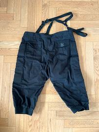 Pantaloni imbottiti per scherma storica / HEMA (Historical European Martial Arts), con bretelle elastiche regolabili e regolazioni in vita. Sulle ginocchia sono presenti gli attacchi per agganciare le protezioni per le ginocchia. Resistenza al perforamento 800 Newton, certificato per sparring. Taglia L. Usati pochissimo, condizioni eccellenti.