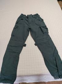 Vendo ipantalone estivo di colore grigio intenso, taglia M/L semi elastico in vita. Perfettamente adatto per attività sportive come caccia e softair. Materiale molto resistente, ignifugo ed impermeabile. Dotato di due tasche grandi laterali all'altezza della coscia, due tasche laterali sui fianchi e due tasche posteriori. Indumento nuovo, mai usato. Prezzo euro 45.
