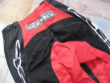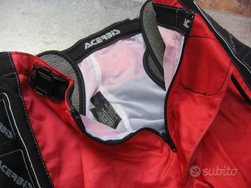 Pantaloni moto come nuovi usati pochissimo taglia M - 48ITA - 33 USA marca ACERBIS STINGER in nylon - poliestere (fodera). Con imbottiture interne asportabili sui fianchi. Chiusura a vita a scatto con elastici sulle caviglie. Materiale antistrappo leggero con rinforzi sui punti più esposti in caso di cadute.