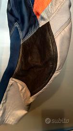 Vendo pantaloni da motocross Scott per bambino, in condizioni pari al nuovo, con solo qualche segno trascurabile. I colori arancio, grigio e blu li rendono super visibili e stilosi durante le avventure off-road.