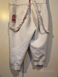Vendo pantaloni da scherma (vanno bene per spada, fioretto e sciabola) FIE 800nw Allstar Startex (modello ultraleggero) per uomo destro taglia 50. Bretelle consumate ma reggono, il difetto è solo estetico, mentre gli elastici al fondo sono stati sostituiti da poco