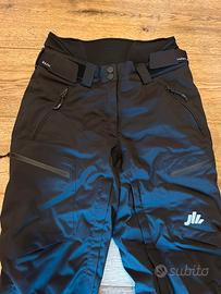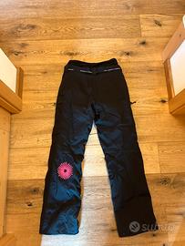 Pantaloni sci alpino Jaam di colore nero con fiore ciclamino sul polpaccio sinistro. Strap per regolare la larghezza della vita. Presentano numerose tasche. Caldi, comodi e confortevoli.