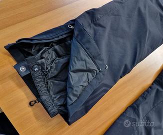Possibilità di regolazione sui fianchi, 2 tasche frontali, protezione anti sfregamento su lato interno della gamba e doppio gambale per scarponi.
