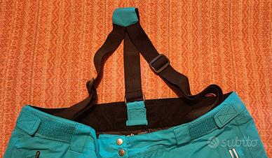 Pantaloni da neve Dare2B taglia 50 in ottime condizioni con copri scarpa, presentano solo delle imperfezioni in fondo al gambale, colore azzurro, bretelle staccabili e tasche laterali con cerniera. Volendo vendibile con la sua giacca