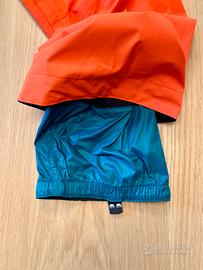 Pantaloni per sci/snowboard Sweet Protection in Goretex da uomo, colore arancio taglia L, dotati di ghette antineve, bottoni per potersi sistemare sopra lo scarpone da sci se aperti o essere più avvolgenti intorno alla caviglia con normali scarpe, regolazione in vita con velcro oltre alla possibilità di usara una cintura e due aerazioni sulle cosce con zip termonastrate.