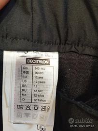 Pantaloni da sci o snowboard di colore nero, Taglia 12 anni, dotati di bretelle regolabili.