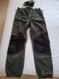 Pantaloni da neve di ottima qualità, comodi e caldi. Colore verde militare, sono robusti e rinforzati nelle zone ginocchia e glutei. Tasche laterali rifinite con zip. Girovita e girocaviglie elasticizzati. Bretelle regolabili. Grossa zip sulla parte esterna delle gambe che corre lungo tutta la lunghezza. Il brand No Limits è sinonimo di sport e qualità. Taglia XL, indossabili e comodi per chi è alto circa 180 e pesa circa 80 kg.