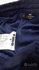 Pantaloni Tecnici Sportivi Da Sci-Snowboard Marca Brugi Con bande riflettenti frontali,completi di tasche (4) Di cui 2 a chiusura a cerniera lungo i fianchi e 2 a chiusura bottoni sul lato posteriore,regolabili e apribili sul fondo caviglia tramite cerniera per indossare stivali e attacchi da sci, colore Blue con bande riflettenti argentati, Taglia M. Da adulto