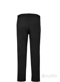 Vita elasticizzata preformata con passanti per cintura due tasche esterne con chiusura zip fondo gamba regolabile.
