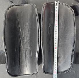 Coppia di para-tibie Top Ring misura L con straps velcro, in similpelle nera.
