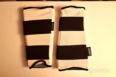 Coppia di **parabraccia (forearm guards)** della marca **Domyos**, ideali per chi pratica arti marziali o sport da contatto come Karate, Taekwondo, Kickboxing o Muay Thai. Le protezioni sono progettate per offrire il massimo comfort e sicurezza durante gli allenamenti o i combattimenti, attutendo i colpi senza limitare i movimenti. * **Marca:** Domyos (Fighting Sports) * **Condizioni:** Nuovi, mai utilizzati (ancora nella confezione originale). * **Taglia:** M (Media). * **Colore:** Bianco con finiture e fasce nere. * **Materiale:** Tessuto a rete (mesh) traspirante per un'ottima ventilazione e chiusure a velcro elasticizzate per una regolazione precisa e stabile sull'avambraccio.