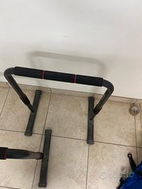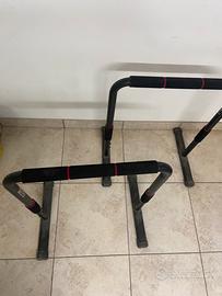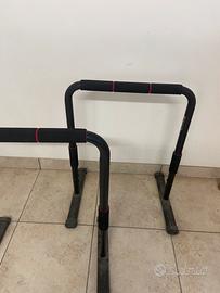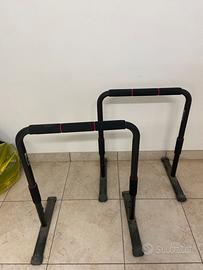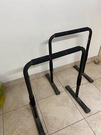 Vendo coppia di parallele stabili e resistenti, perfette per esercizi a corpo libero come dips, L-sit, push-up, planche, ecc. Robuste e regolabili in altezza, con impugnature imbottite antiscivolo.