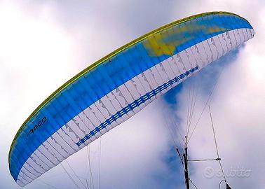 VENDO APCO HYBRID con libretto NUOVA 12 decolli e 5 ore di volo reali, APPENA REVISIONATA scad 19-4-26 fabbricata il 15/7/2020 , colori come in foto, no patch, no abrasioni, tenuta perfettamente sempre distesa dentro la sportina. PERFETTA per Hike & Fly , Paramotore, Voli Bivacco e Cross. OTTIMA STABILITA E GONFIAGGI VELOCI E PRECISI Caratteristiche : doppia superfice cassonata nell'anteriore e mono nel posteriore questo la rende stabile e ottima anche per H&F riducendo il peso e dimensioni di ingombro. CARATTERISTICHE: classe B; 3,1 kg peso; Taglia M 22 m2, range peso dai 70Kg ai 90 Kg.