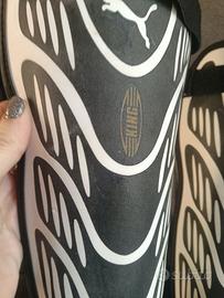 Parastinchi da calcio Puma King Strap Shin Guards. bianco nero e oro da ragazzo - parastinchi da calcio, colore oro nero e bianco - marca Puma - usati poco ma in ottime condizioni, qualche graffietto e segnetto come da foto - lunghezza circa 24 cm