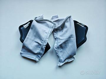 Parastinchi Kipsta bianchi con sistema di mantenimento ottimale grazie al gambale (calza). Misure: altezza 14,5 cm, larghezza max 10,5 (parte superiore) minima 8 (parte inferiore). Buone condizioni.