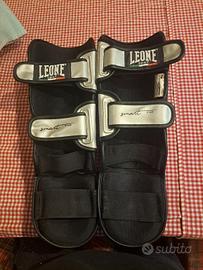 Vendo coppia di parastinchi con parapiede integrato della Leone 1947, modello Smart. Ideali per Kick Boxing, Muay Thai, MMA e sport da combattimento. Caratteristiche principali: Marca: Leone 1947 (Originali). Taglia: S (Small), ideale per ragazzi o persone di corporatura minuta. Design: Modello ergonomico che garantisce un'ottima protezione sia alla tibia che al collo del piede. Chiusura: Doppia chiusura a velcro posteriore per la massima stabilità durante l'allenamento. Condizioni: Ottime, usati pochissimo e ben tenuti (come da foto). Gli elastici sotto il piede e i velcri sono ancora perfettamente integri e funzionali. Perfetti per chi inizia o per chi cerca un prodotto di qualità a un prezzo contenuto.