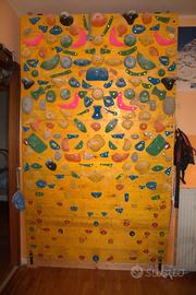 Parete arrampicata tipo system wall, inclinabile fino a 90 gradi, dimensioni 150x260 cm, completa di 160 prese varie (eurohold, smog)+ 30 piedi con viti e ragnetti , comprate tutte nuove e usate solo per allenamenti a casa .