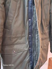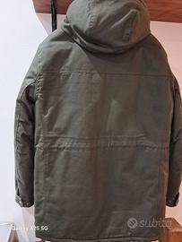 Giubbotto Celio parka di colore verde, con fodera interna in pile bianco e imbottitura.