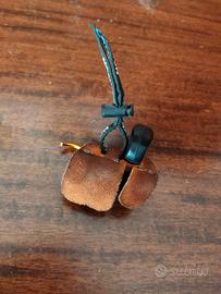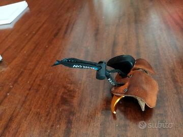 patella che protegge le dita indice, medio e anulare dal contatto con la corda, com. poggia mento regolabile.