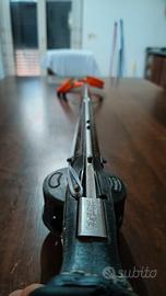 Arbalete Pathos laser open carbon 90 ,fucile che mi ha regalato grandi soddisfazioni, in buone condizioni qualche acciacco da sistemare ma ancora super funzionale come si vede dalle foto bisogna sostituire l'appoggio di gomma del calcio e la rondella della frizione del mulinello che purtroppo ho perso... L'arbalete viene fornito pronto pesca con elastici nuovi Orange C4 da 14mm e mezzo asta salvimar nuova mai usata con 3 pinnette di carica e mulinello con sagolino. Fusto full carbon leggero e resistente riduce il rinculo e ha un ottimo brandeggio