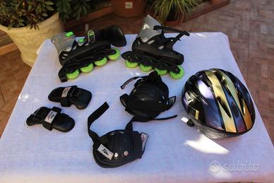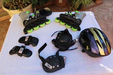 Patini in linea per ragazzi - n° 35-36- da provare - a corredo il casco - le gomitiere e le ginocchiere - tutto usato solo pochi giorni -
