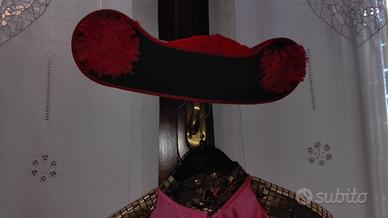 Comprende: cappello in carta pesta, giacca con cucito il mantello, pantaloni, body, cintura. - Usato solo due volte, tenuto molto bene e già lavato.