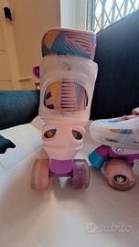 Pattini a 4 ruote di misura n.34-36 allungabile tramite tasto posteriore. Colorazione rosa con tonalità gialle e azzurre. Ruote luminose!! Un paio 20€ due paia 30€
