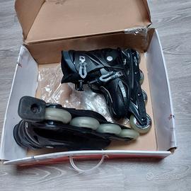 L'annuncio comprende i pattini in linea (in ottime condizioni) e le protezioni (taglia: S) mai usate