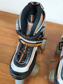 Pattini a 4 ruote Sturdy regolabili dalla tg 34 alla tg 37 - USATI, in perfette condizioni , cinghie, scarpa tutto non usurato e perfettamente funzionante . Normali segni di utilizzo su ruote e freno . Utllizzabili ancora per tantissimi anni . GA#