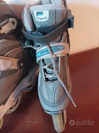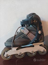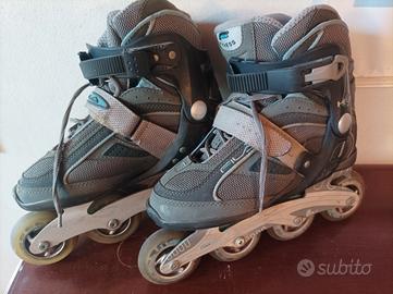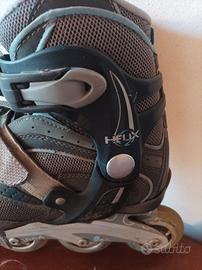 Vendo pattini a rotelle in linea, marca Fila modello Helix, usati in buone condizioni. Misura 38. Chiusura a leva, lacci e cinturino in velcro. Colore grigio.