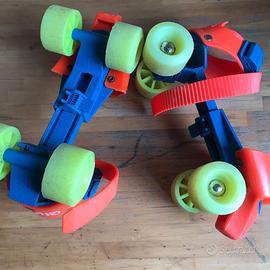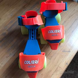Pattini a rotelle allungabili vintage Colibri' Gioca. Colore blu / arancio. Usati ma ben conservati e perfettamente funzionanti. Si allungano da cm 16,50 a cm 21,50. Arriva quello che vedete in foto.